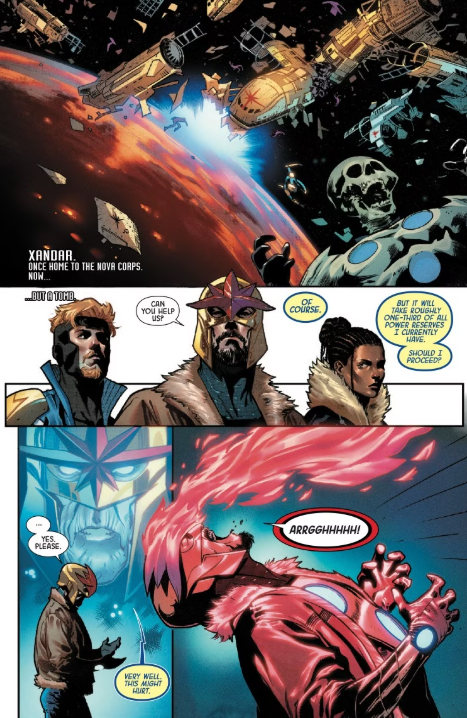 Deuxième partie d'un event cosmique Marvel en quatre parties ! Face aux conséquences de l'assassinat mystérieux des dirigeants des empires galactiques Marvel, les feux de la guerre s'allument ! Alors que le conflit couve, NOVA et STAR-LORD se lancent à la poursuite de celui qui se cache derrière tous ces actes maléfiques – un voyage qui les mènera jusqu'à l'Empire intergalactique du Wakanda !