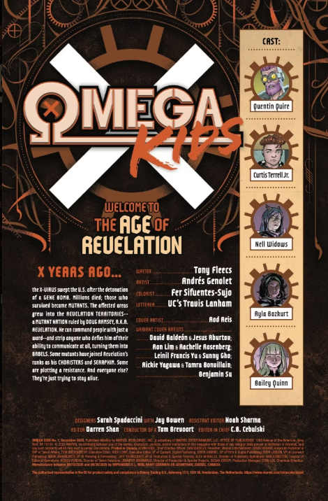 La preview VO d'Omega Kids #1 a été dévoilée. Le numéro est écrit par Tony Fleecs et est dessiné par Andres Genolt avec une cover de Rod Reis. Edité par Marvel, il sort ce mercredi 22 octobre pour 3.99$.