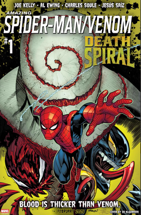 Spider-Man et Venom vont se retrouver une fois encore dans une nouvelle série Marvel. Intitulée Amazing Spider-Man / Venom: Death Spiral, elle sera écrite par Joe Kelly, Al Ewing et Charles Soule tandis que Jesus Saiz sera en charge des dessins. Voici son synopsis :