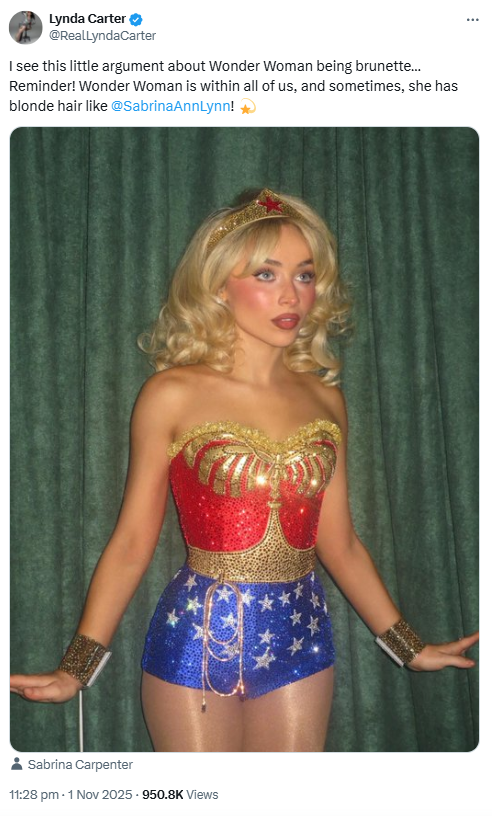 Rappel ! Wonder Woman est en chacune de nous, et parfois, elle est blonde comme Sabrina Carpenter.